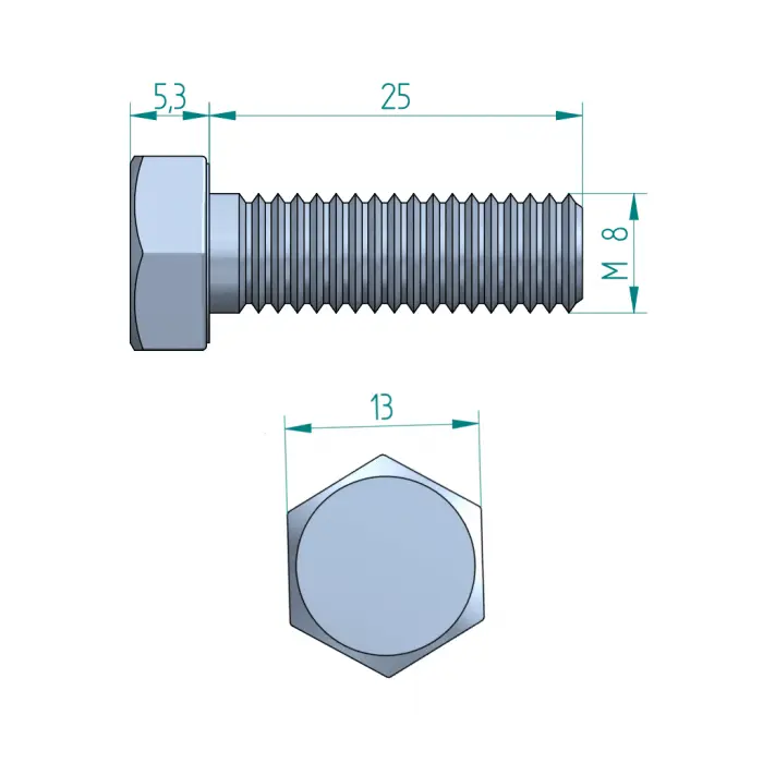 - Normgerechte M8 × 25 mm Schraube nach DIN 933