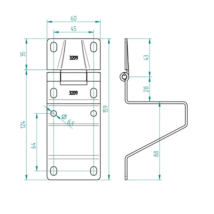 ConDoor Seitenscharnier FS Epco / Tecsedo | Fingersafe | verzinkt | 159×60 mm | 45 mm Lochabstand
