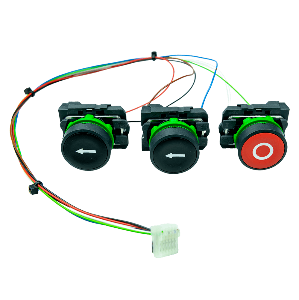 Der Drucktastersatz wird bei MFZ Steuerungen der Modelle AS130 und CS300 verwendet und ermöglicht eine direkte, intuitive Bedienung der Torfunktionen. Der Austausch erfolgt schnell und unkompliziert, solange die Anlage zuvor spannungsfrei geschaltet wird.